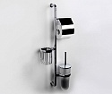 Стойка Wasserkraft K-1438 совмещает в себе несколько приспособлений для санузла. Туалетная бумага, освежитель воздуха и ершик компактно хранятся на одной стойке. Их можно плавно поворачивать на 360°, менять местами, убирать один или несколько элементов. Крепление всех частей конструкции осуществляется с помощью встроенных винтов и внутренней резьбы. В местах стыков предусмотрены пластиковые уплотнители для бесшумного соединения. Стойка Wasserkraft демонстрирует практичный современный стиль и высокую степень надежности в бытовой эксплуатации. Все компоненты модели выполнены из прочных материалов – латуни и стекла. Хромоникелевое покрытие долговечно и устойчиво к коррозии