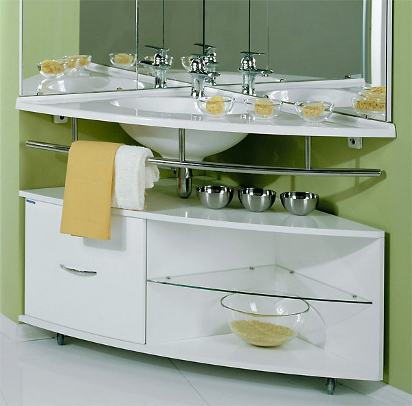 Модель укомплектована бельевой корзиной, расположенной внутри корпуса, что дает возможность организовать хранение текстиля. Встроенные полки закрываются дверцами, позволяя разместить средства гигиены и принадлежности, сохраняя порядок и скрывая содержимое от внешнего вида. Внутреннее пространство разделено на секции, что облегчает распределение предметов и способствует удобному доступу к необходимым вещам. Конструкция позволяет монтировать умывальники подходящего формата, обеспечивая правильное сопряжение сантехнических элементов. Форма корпуса учитывает специфику углового размещения. Простая система открывания дверей обеспечивает легкий доступ к полкам и корзине, а рациональное распределение внутреннего объема повышает удобство эксплуатации.