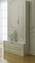 Внутри предусмотрена закрытая система хранения с дверками, обеспечивающая надежное размещение бытовых предметов, косметических средств, полотенец и аксессуаров. Полки выдерживают значительные нагрузки, оставаясь устойчивыми к деформации и истиранию. Фурнитура выполнена из хрома и кристалла, что гарантирует долговечность, плавность хода дверок и простоту обслуживания. Конструкция позволяет равномерно распределять нагрузку и предотвращает перекосы, а напольный монтаж обеспечивает надежную устойчивость без дополнительного крепления к стене.
