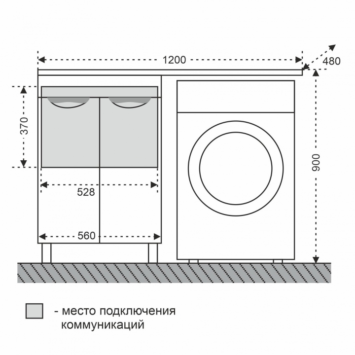 Тумба напольная Лидер 56 с умывальником над стиральной машиной Лидер 120 правая