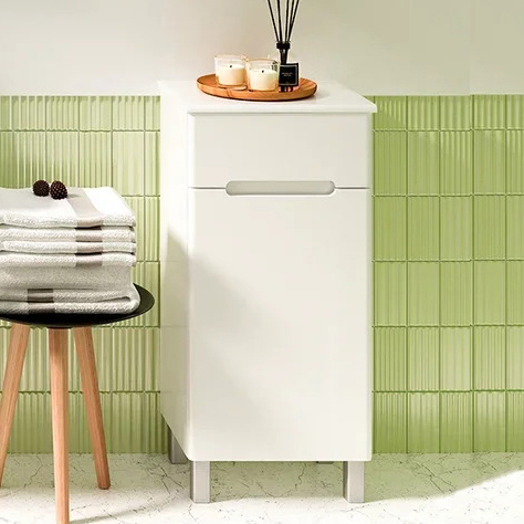 Материалы корпуса и фасадов устойчивы к воздействию влаги, бытовых чистящих средств и механических нагрузок. Установка не требует сложных приспособлений и может выполняться самостоятельно. Простые линии конструкции и белый цвет делают тумбу универсальным элементом интерьера, легко сочетаемым с различными стилями.