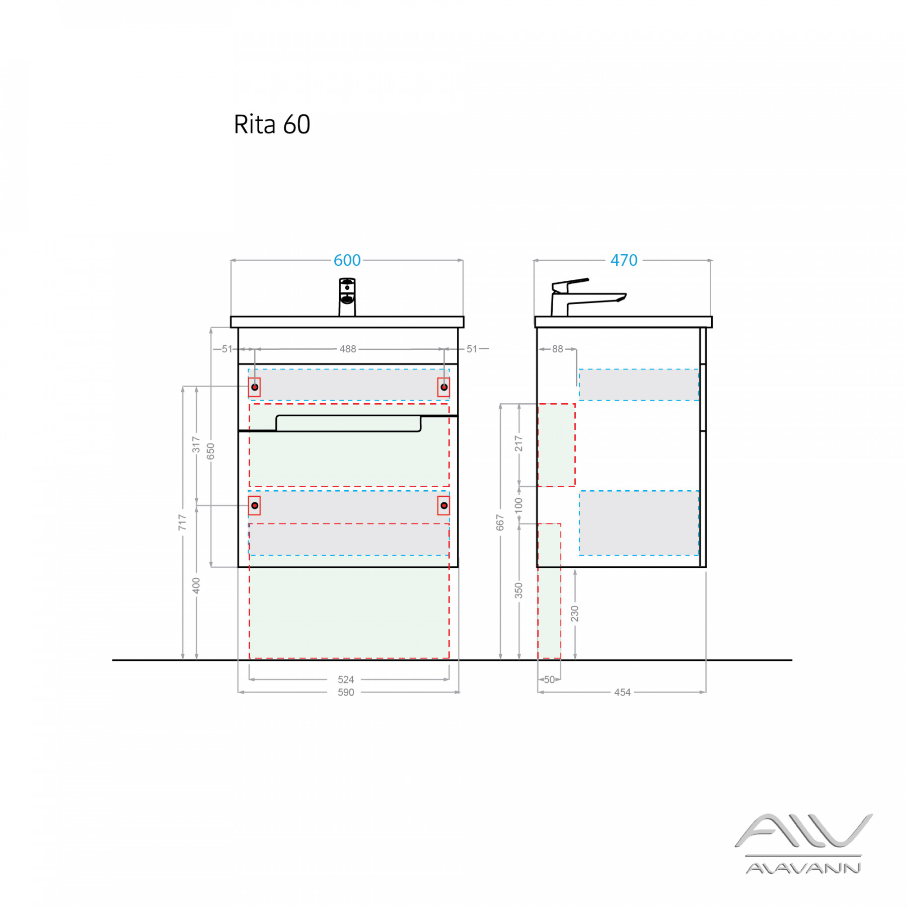 Тумба с раковиной Alavann Rita 60 белая