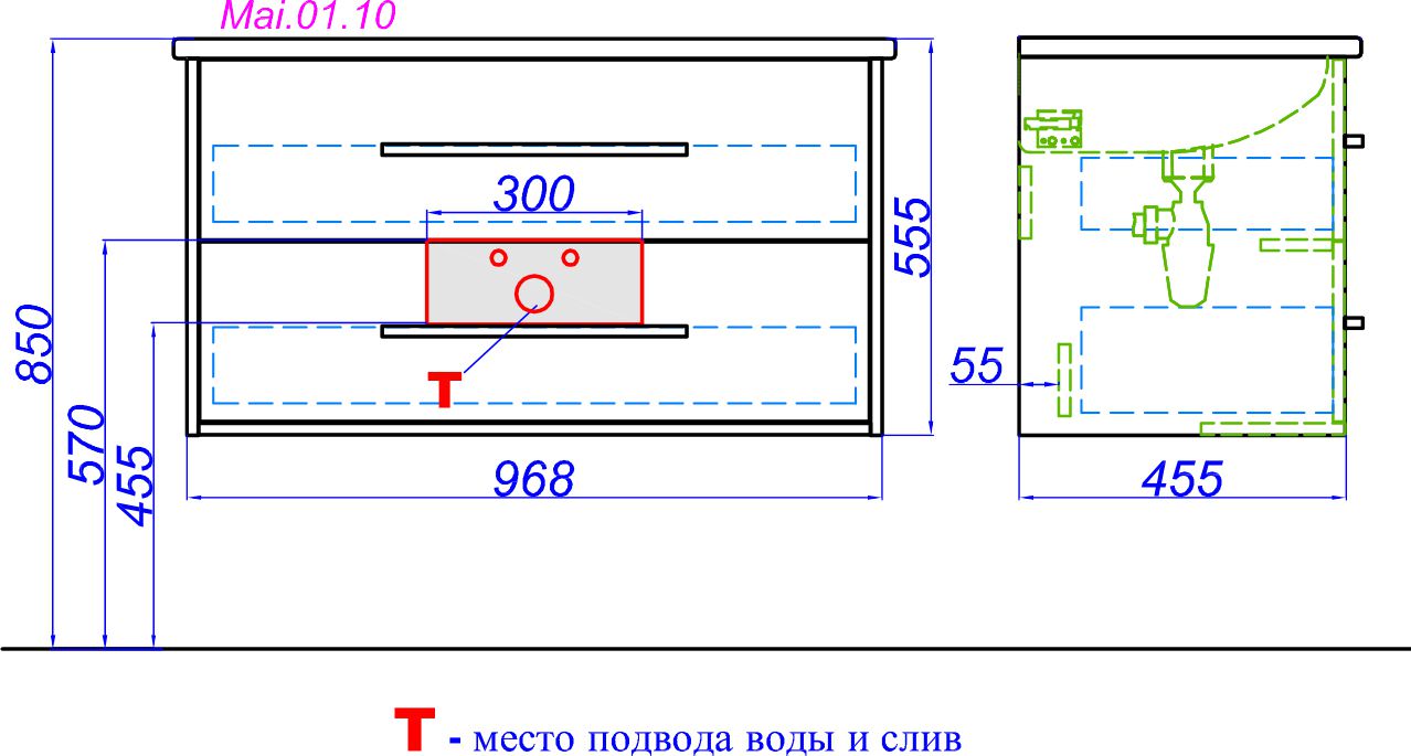Тумба с раковиной Aqwella 5 stars Miami 100