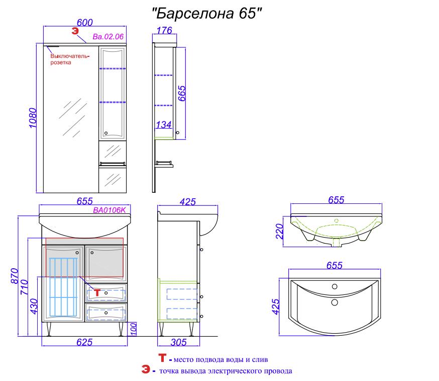 Тумба с раковиной Aqwella Барселона Люкс 65 с бельевой корзиной