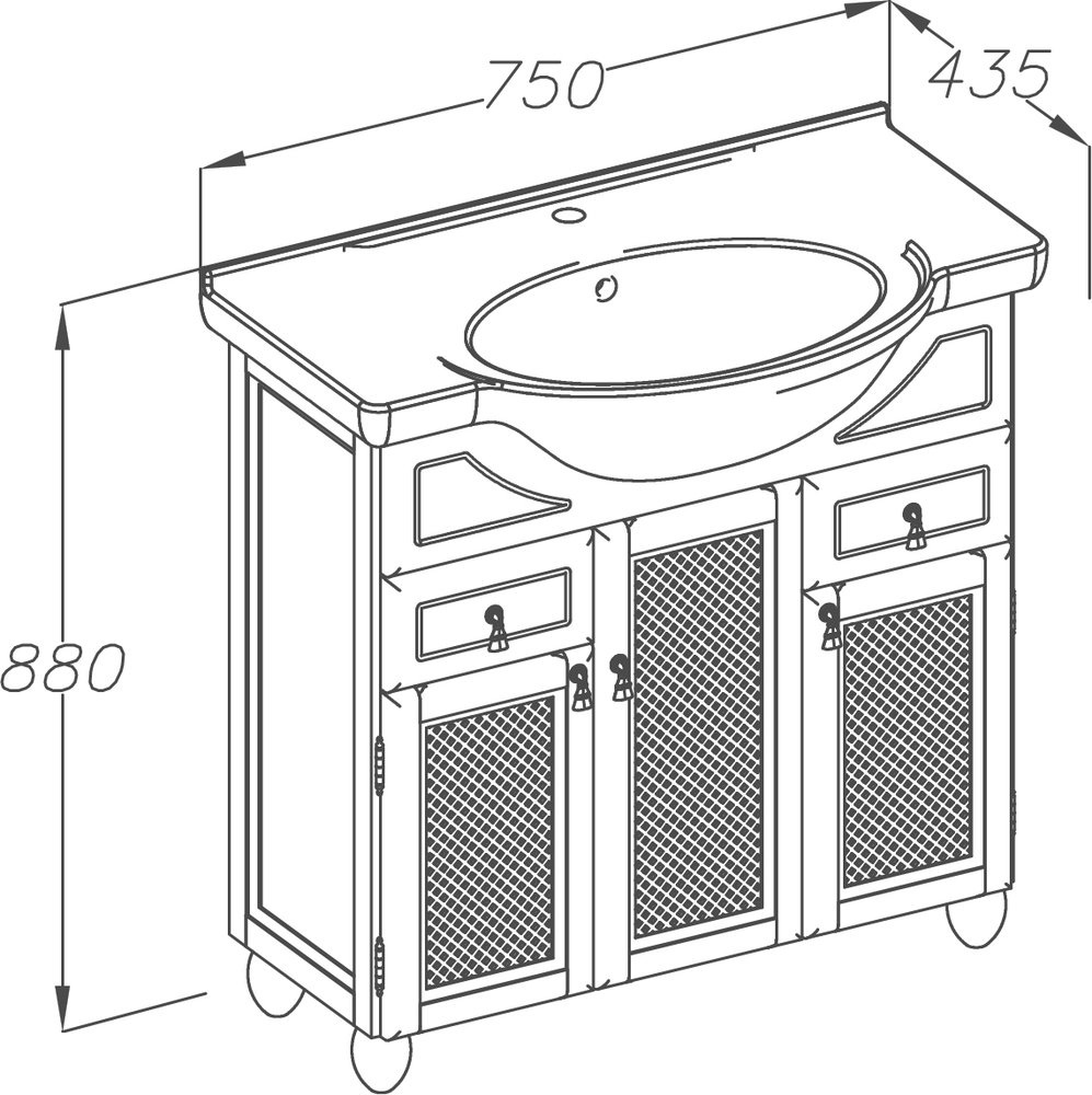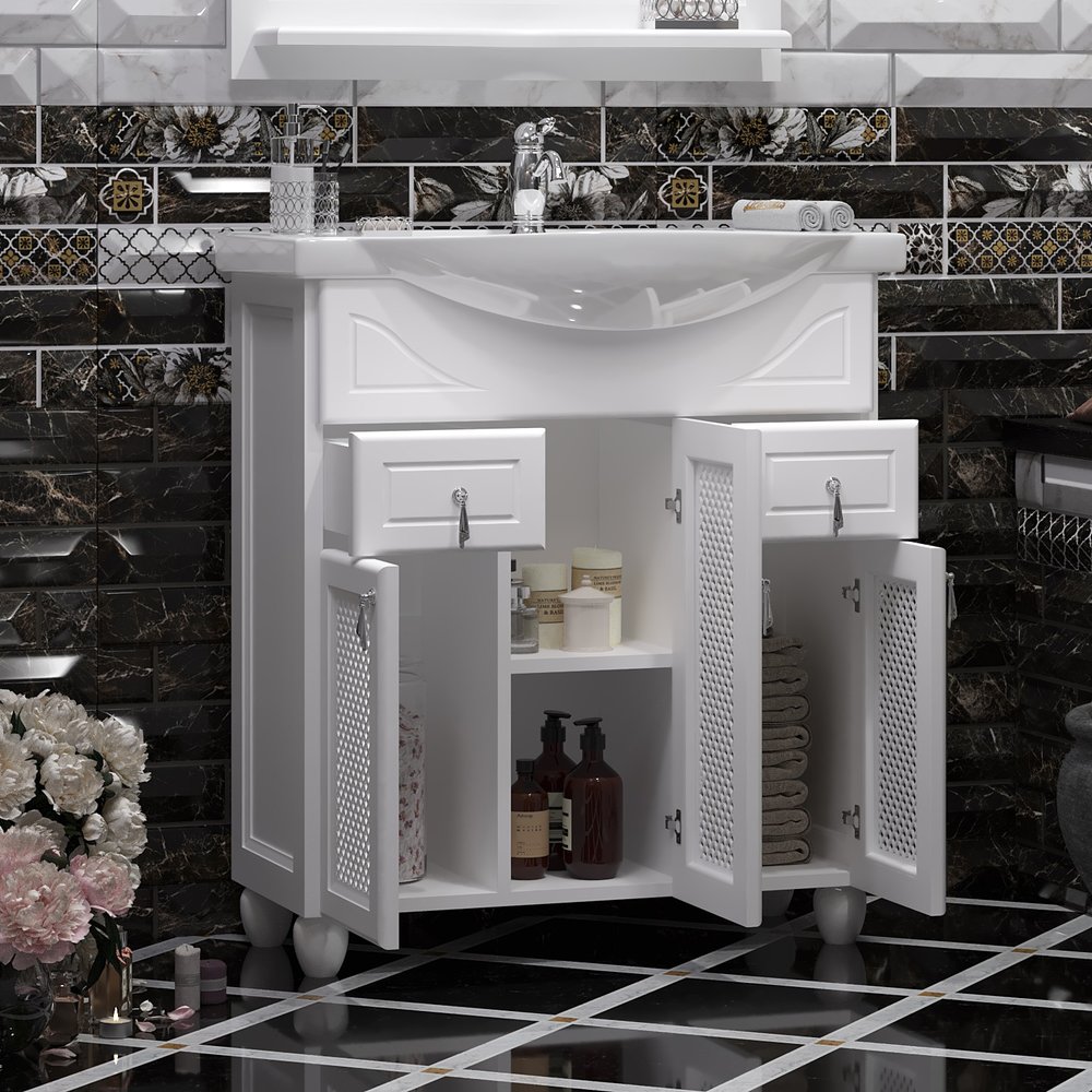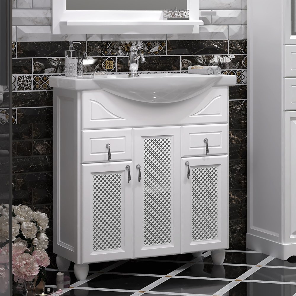 Тумба с раковиной Opadiris Тибет 75 с декоративной решеткой, белая матовая