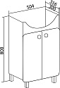 Тумба с раковиной напольная с двумя распашными фасадами и одной внутренней полкой.
