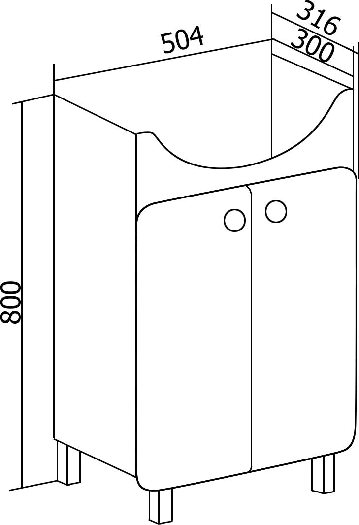 Тумба с раковиной напольная с двумя распашными фасадами и одной внутренней полкой.