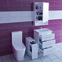 Белый цвет мебели легко сочетается с различными отделочными материалами и стилями оформления, что делает тумбу универсальным элементом интерьера. Хромированная фурнитура повышает долговечность эксплуатации и надежность работы выдвижных механизмов. Материалы корпуса и фасада устойчивы к повышенной влажности, что обеспечивает длительный срок службы без потери эксплуатационных характеристик.