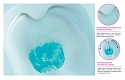 Организация потока воды реализована по принципу душевого слива с воронкой-водоворотом, что позволяет эффективно очищать поверхность чаши при минимальном расходе воды. Система антивсплеск предотвращает разбрызгивание жидкости, поддерживая чистоту в помещении. Унитаз не оснащен полочкой, укороченная версия не предусмотрена. Для монтажа не требуется отдельная система инсталляции. Механизм смыва прост в обслуживании и долговечен, обеспечивает надежное функционирование без необходимости частой регулировки.