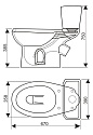 Унитаз-компакт Оскольская керамика Элисса выполнен из прочного фарфора. Напольная модель с косым выпуском обеспечивает удобное подключение к канализации под углом. Длина изделия составляет 67 см, ширина — 39 см, высота — 75 см, а высота чаши равна 38,5 см. Форма овальная, подвод воды реализован снизу бачка. Установленный сверху бачок входит в комплект. Метод смыва — механическая кнопка с режимом экономичного использования воды. Поток жидкости организован по принципу душевой воронки-водоворота, что снижает риск брызг и обеспечивает эффективный смыв.