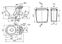 Корпус и бачок изготовлены из фарфора, обладающего прочностью и долговечностью, а сиденье выполнено из полипропилена. В конструкции реализована система антивсплеск, предотвращающая разбрызгивание воды при смыве. Организация смывающего потока выполнена по принципу душевой воронки-водоворота, что обеспечивает равномерное и эффективное удаление отходов. Механизм слива полностью механический, без микролифта и быстросъёмного сиденья, что снижает риск поломок и упрощает эксплуатацию.