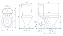 Унитаз-компакт Rosa Стандарт отличается длиной 63 см, шириной 35,5 см и высотой 73 см. Направление выпуска – косое, что обеспечивает универсальность подключения к существующей канализационной системе. Чаша выполнена из прочного фарфора, форма – овальная, высота чаши составляет 41 см, что соответствует стандартным эргономическим требованиям. Бачок входит в комплект, подвод воды осуществляется снизу, а установка производится поверх унитаза. Механизм слива реализован через классическую механическую кнопку с двумя режимами работы: стандартный и экономичный.