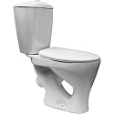 Унитаз-компакт Santeri Версия белый представлен напольным исполнением, рассчитанным на бытовое использование. Длина изделия составляет 63,8 см, ширина 35,5 см, высота — 80 см. Чаша овальной формы с высотой посадки 39,5 см обеспечивает стандартный уровень комфорта. Выпуск канализации выполнен под углом, что упрощает подключение к существующей системе. Подвод воды предусмотрен снизу бачка, который устанавливается поверх унитаза. Бачок включён в комплект, управление сливом осуществляется механической кнопкой.