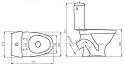 Унитаз-компакт Santeri Вест выполнен из белого фарфора высокого качества, имеет овальную чашу и напольное размещение. Общие габариты изделия составляют 61 см в длину, 37,5 см в ширину и 77,5 см в высоту, при этом высота чаши равна 40 см, что обеспечивает удобство при использовании. Выпуск косой, под углом, облегчает подключение к канализации и совместим с большинством стандартных труб. В комплект входит сливной бачок, который устанавливается непосредственно на унитаз с нижним подводом воды. Управление сливом осуществляется механической кнопкой с двумя режимами работы, включая экономичный, позволяющий снизить расход воды.