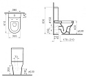 Форма унитаза овальная, полочка внутри чаши отсутствует. Модель оснащена системой антивсплеск, предотвращающей разбрызгивание воды при смывании. Установка не требует системы инсталляции, что упрощает монтаж в бытовых условиях.