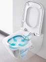 Ключевой особенностью модели является безободковая технология, которая устраняет труднодоступные места под ободком, значительно упрощая процесс очистки и поддержания гигиены. Каскадный слив обеспечивает эффективное и равномерное распределение воды по всей поверхности чаши, способствуя ее тщательному очищению, при этом процесс происходит с минимальным уровнем шума и брызгообразованием. Горизонтальный выпуск, скрытый в стене, позволяет сохранить чистоту линий конструкции, интегрируя унитаз в общую архитектурную концепцию помещения. Скрытый монтаж сливного бачка с использованием системы инсталляции требует предварительной подготовки, но в результате создает безупречно ровную стенную поверхность без выступающих элементов.