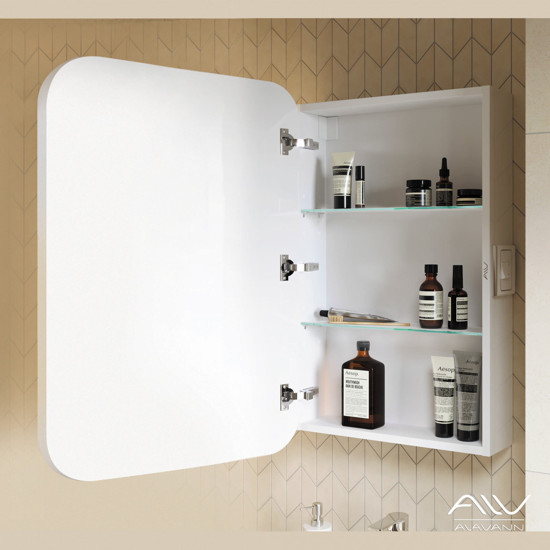 Модель оснащена системой хранения с полками, позволяющей упорядочить аксессуары, средства ухода и мелкие предметы гигиены. Наличие встроенной подсветки обеспечивает равномерное освещение рабочей зоны, удобное при выполнении процедур, требующих точного визуального контроля. Кнопочный выключатель облегчает управление светом, а встроенная розетка расширяет возможности подключения дополнительных устройств. Элементы конструкции выполнены с учетом безопасности, простоты эксплуатации и долговечности, что снижает необходимость частого обслуживания.
