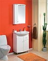 Фасад шкафа украшен изящной фрезеровкой, которая придает модели индивидуальность и эстетическую завершенность. За дверцей скрывается практичное внутреннее пространство с полкой, обеспечивающей достаточно места для хранения косметики, гигиенических принадлежностей и бытовых мелочей. Верхняя панель интегрирована с системой освещения, состоящей из двух галогеновых светильников, и розеткой для подключения электроприборов. Это решение создает комфортные условия для использования зеркала и обеспечивает необходимый функционал в зоне умывальника.