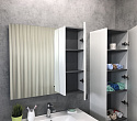 Основная часть корпуса выполнена из прочной ДСП, устойчивой к воздействию влаги при правильной эксплуатации. Для фасада также используется ДСП с аналогичным покрытием. Поверхность матовая, благодаря чему изделие не оставляет заметных следов от касаний. Фурнитура изготовлена из хромированного металла, что повышает износостойкость и надежность крепежных элементов. Монтаж осуществляется в подвесном варианте, комплектуется стандартными креплениями, позволяющими быстро установить шкаф на стену. Зеркальное полотно закреплено на фасадной части и полностью готово к использованию.