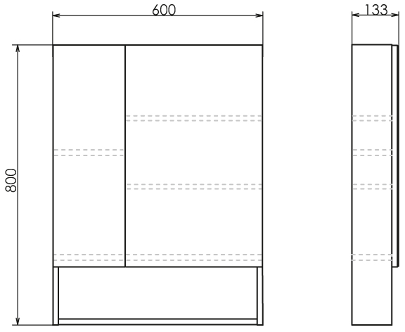 Габариты модели — 60 см в ширину, 80 см в высоту и 13,3 см в глубину. Эти параметры делают шкаф подходящим для ванных комнат различной площади. Светлый оттенок корпуса «дуб белый» нейтрален и легко сочетается с другой мебелью и сантехникой. Поверхность корпуса выполнена из ламинированной плиты, что повышает износостойкость и обеспечивает простоту ухода. Фасадная часть — зеркальная, что исключает необходимость отдельного зеркала и экономит пространство. Открывание осуществляется за счет удобной дверцы, скрывающей полки от влаги и пыли. Встроенные горизонтальные секции внутри шкафа позволяют организовать порядок и быстро находить нужные предметы.