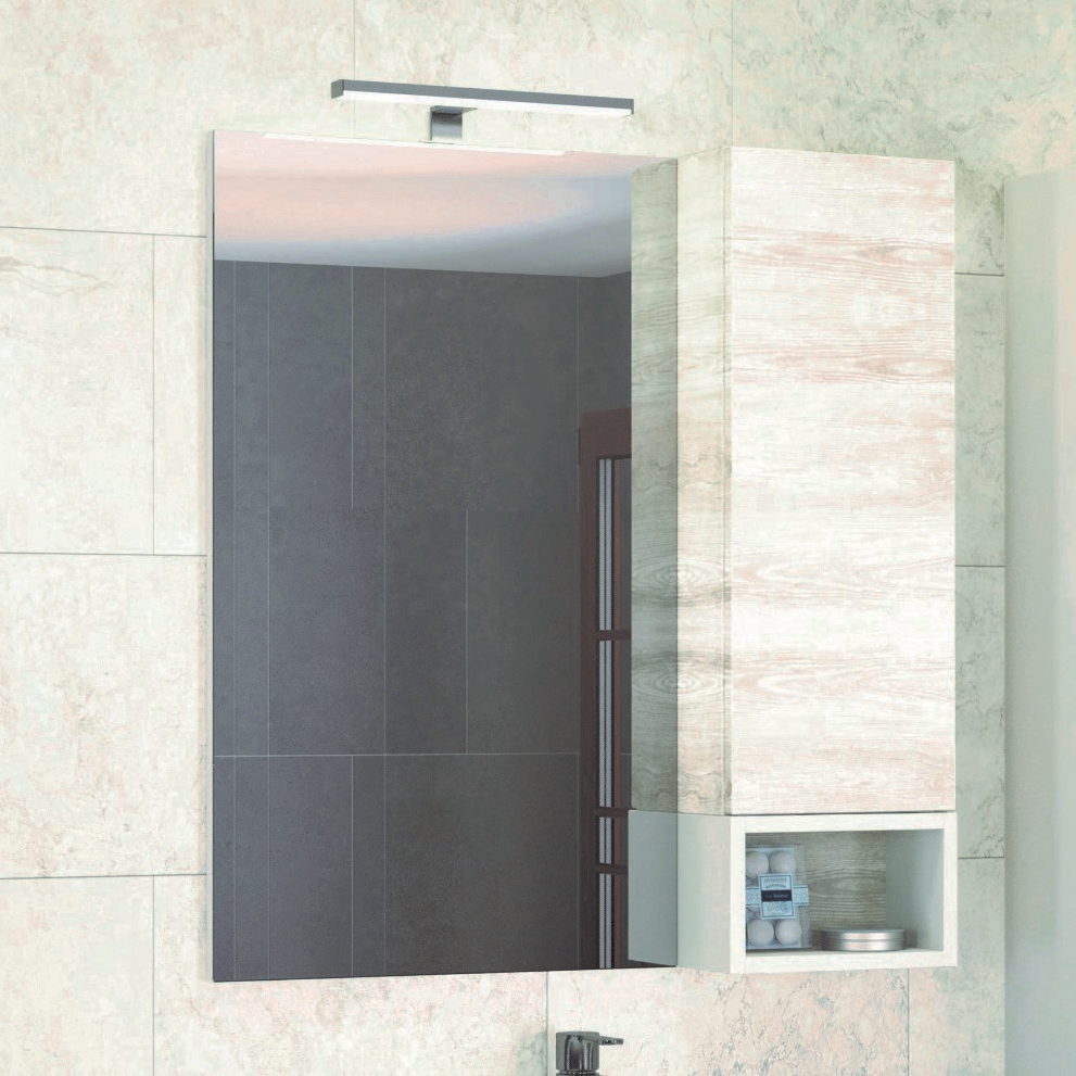 Зеркало-шкаф предназначен для длительной эксплуатации и полностью адаптирован к ежедневному использованию. Прямоугольная форма обеспечивает рациональное размещение на стене, а светлый оттенок древесины гармонирует с большинством популярных отделочных материалов.