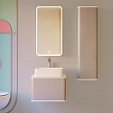 Корпус оснащен системой хранения с дверками, обеспечивающей аккуратное размещение гигиенических принадлежностей, косметики и бытовых мелочей. Внутреннее пространство разделено на секции, позволяющие рационально распределить предметы по категориям. Сенсорный выключатель упрощает управление освещением и повышает безопасность использования, исключая механический контакт с поверхностью. Все элементы выполнены из долговечных материалов, устойчивых к влаге и перепадам температуры, что продлевает срок службы мебели.