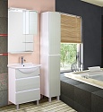 Особенностью модели является комбинированная организация пространства, сочетающая закрытую зону хранения за распашной дверцей и открытые полки для декора или часто используемых предметов. Врезной светодиодный модуль с прямым подключением к электросети обеспечивает качественное и экономичное освещение зоны умывальника. Система плавного закрывания гарантирует бесшумную работу дверцы, сохраняя спокойную атмосферу в помещении. Зеркальное полотно на основе серебряной амальгамы отличается четким отражением, влагостойкостью и долговечностью, сохраняя безупречный вид в условиях повышенной влажности.