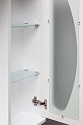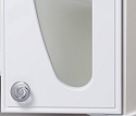 Конструкция шкафа демонстрирует внимательное отношение к деталям и качеству исполнения. Корпус из ДСП с матовым ламинированным покрытием сочетает практичность и долговечность, в то время как фасады из МДФ и стекла с глянцевой и матовой отделкой создают интересный визуальный контраст. Хромированная фурнитура добавляет изделию современные акценты, подчеркивая чистоту линий и завершенность дизайна. Сочетание различных фактур и материалов позволяет этой модели стать стильным акцентом в интерьере ванной комнаты, отвечая как эстетическим, так и функциональным требованиям.