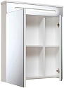 Шкаф оборудован встроенной подсветкой, управляемой электровыключателем, расположенным на корпусе для удобного доступа. Предусмотрена встроенная розетка для подключения электрических приборов, таких как фен, бритва или электрическая щетка. Система хранения организована с дверцами, внутри которых предусмотрены полки для косметических, гигиенических и бытовых принадлежностей. Продуманное расположение элементов позволяет рационально использовать пространство, обеспечивая удобство в повседневном применении. Механизм открытия дверок протестирован на долговременную эксплуатацию и отличается плавностью хода.