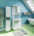 Правосторонняя компоновка модели объединяет боковой шкафчик и систему полок, создавая многоуровневую структуру хранения. Такое решение позволяет рационально распределить банные принадлежности и косметику, обеспечивая удобный доступ к различным категориям предметов. Встроенная светодиодная подсветка создает комфортное освещение в зоне умывальника, делая использование зеркала удобным в любое время суток. Наличие розетки добавляет практичности, позволяя подключить электроприборы непосредственно в рабочей зоне. Система плавного доводчика гарантирует бесшумное закрывание дверцы, сохраняя спокойную атмосферу в помещении.