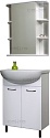 Особенностью модели является двустороннее расположение полок, которое создает удобную систему хранения с разделением на функциональные зоны. Такое решение позволяет рационально распределить банные принадлежности, косметику и гигиенические средства, обеспечивая порядок и быстрый доступ к необходимым предметам. Встроенная подсветка, расположенная над зеркалом, обеспечивает равномерное освещение без бликов, создавая комфортные условия для выполнения гигиенических процедур. Наличие розетки добавляет практичности, позволяя использовать электроприборы непосредственно в зоне умывальника.