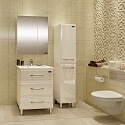 Конструкция шкафа демонстрирует устойчивость к эксплуатации в ванной комнате. Корпус из ДСП с ламинированным покрытием обеспечивает защиту от воздействия влаги и пара, сохраняя стабильность геометрии и внешнего вида. Матовая поверхность фасада практична в уходе и устойчива к появлению следов от прикосновений. Светодиодная лампа мощностью 5 Вт сочетает энергоэффективность с долгим сроком службы, а электромеханический выключатель гарантирует надежное управление подсветкой. Поставка в собранном виде упрощает процесс установки, позволяя быстро интегрировать шкаф в интерьер ванной комнаты.
